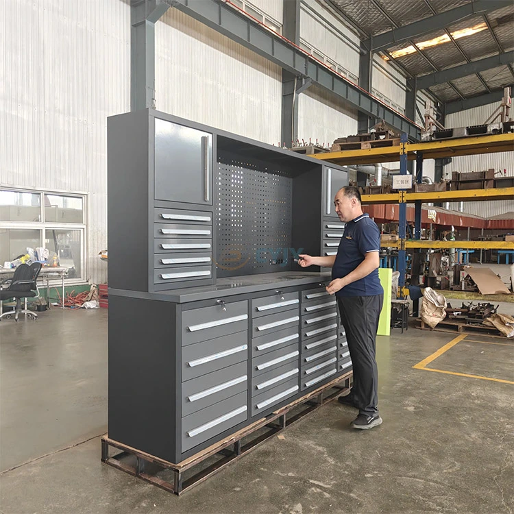 Hecho de acero enrollado en frío de 1,2 mm de espesor, este banco de trabajo de herramientas de 100 pulgadas es un banco de trabajo industrial/de garaje de grado profesional ideal para mecanizado pesado, reparación automotriz, talleres de carpintería y almacenamiento. Nuestro banco de trabajo de herramientas de 100 pulgadas es perfecto para el uso del taller. ¡Las consultas son bienvenidas!