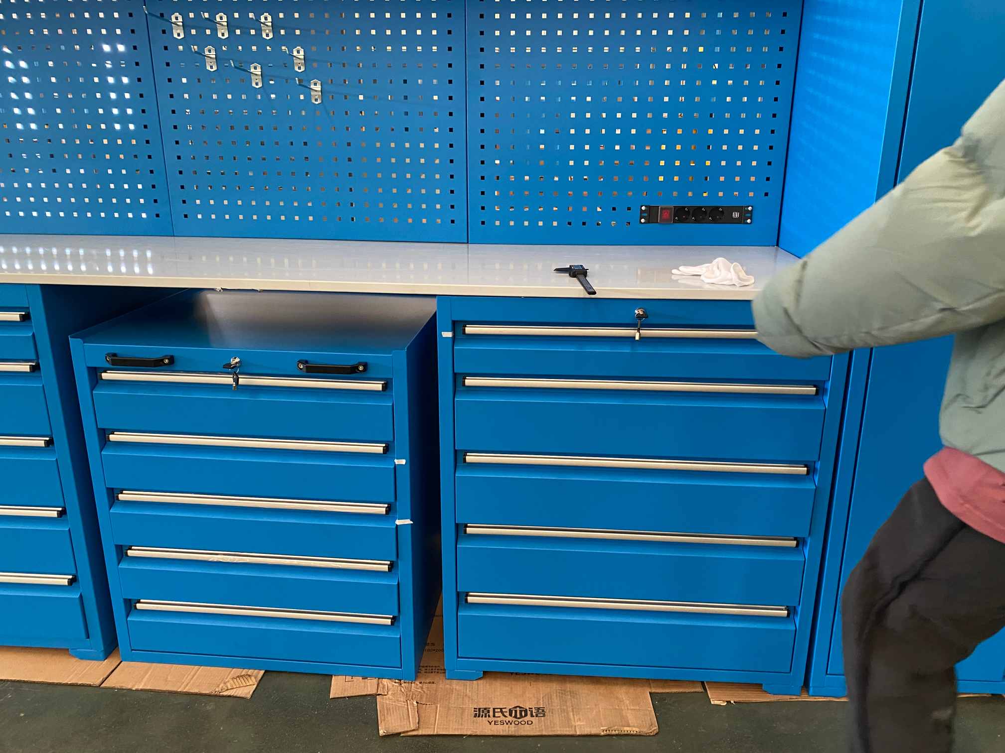 Módulos funcionales: Cyjy agrega módulos de cajones con cajones de bolas pesadas para almacenar elementos pequeños como piezas y tornillos pequeños. También se pueden instalar varillas colgantes de metal y tablas de gancho en las puertas del gabinete o paneles laterales.