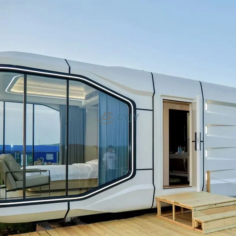 Los modelos modernos de las casas de vidrio están equipados con vidrio electrocrómico, lo que puede ajustar la transparencia a través de la aplicación del teléfono móvil para lograr el cambio gratuito entre la privacidad y la iluminación.