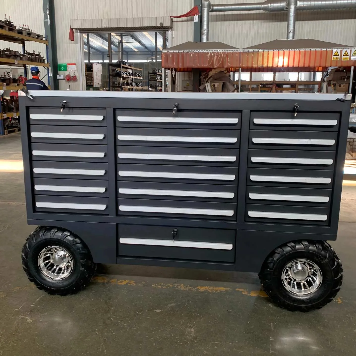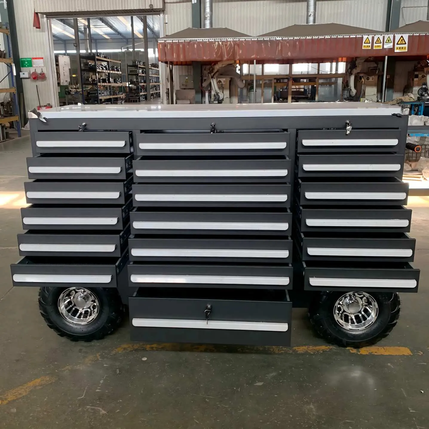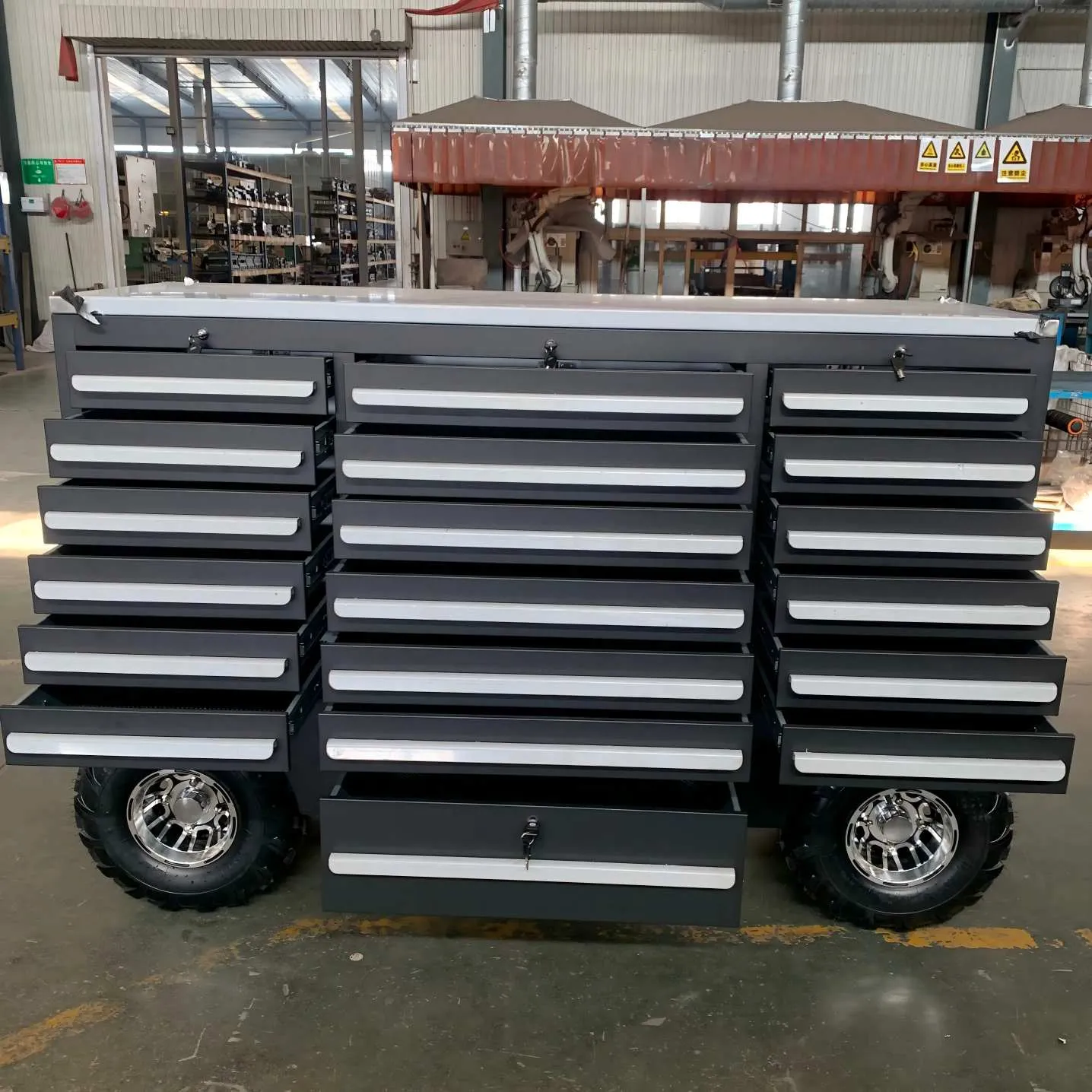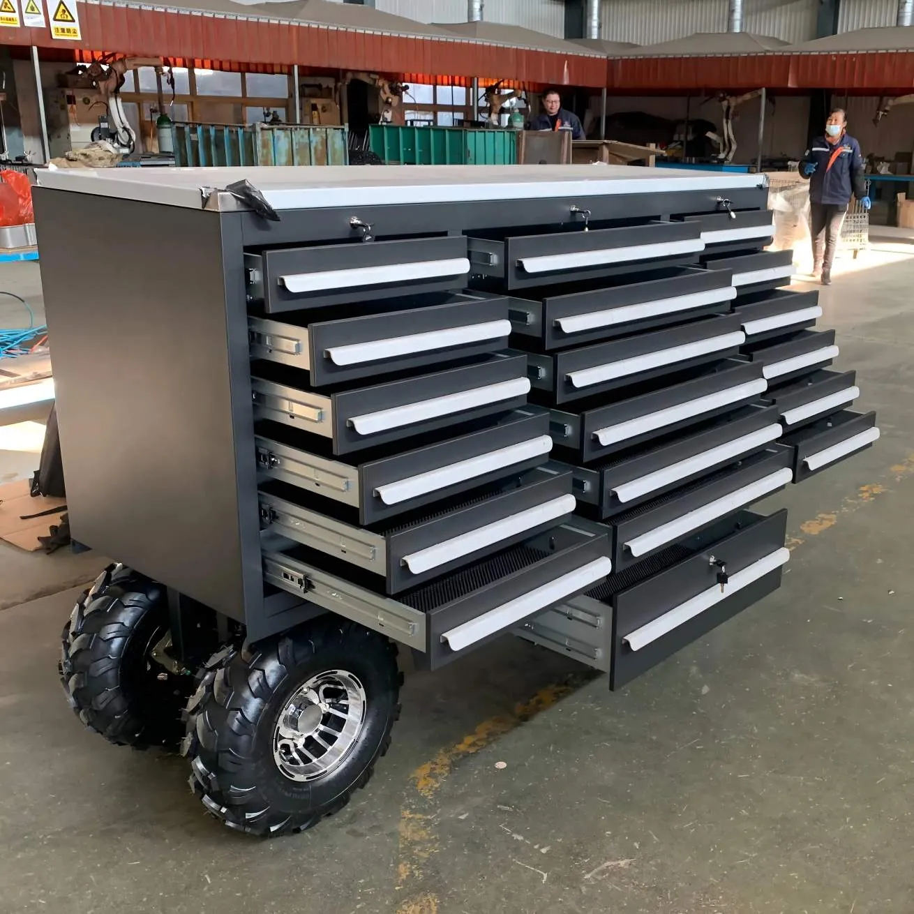 En lugares como talleres de reparación de automóviles y plantas de procesamiento mecánico, los técnicos de mantenimiento pueden almacenar varias herramientas profesionales en los cajones de cofre de la herramienta de garaje de rodillos OEM en categorías, facilitando el acceso rápido durante las operaciones de mantenimiento y mejorando la eficiencia laboral. La característica de movilidad conveniente permite que el cofre de la herramienta de garaje del rodillo OEM se mueva de manera flexible al área de trabajo con el técnico en el taller.