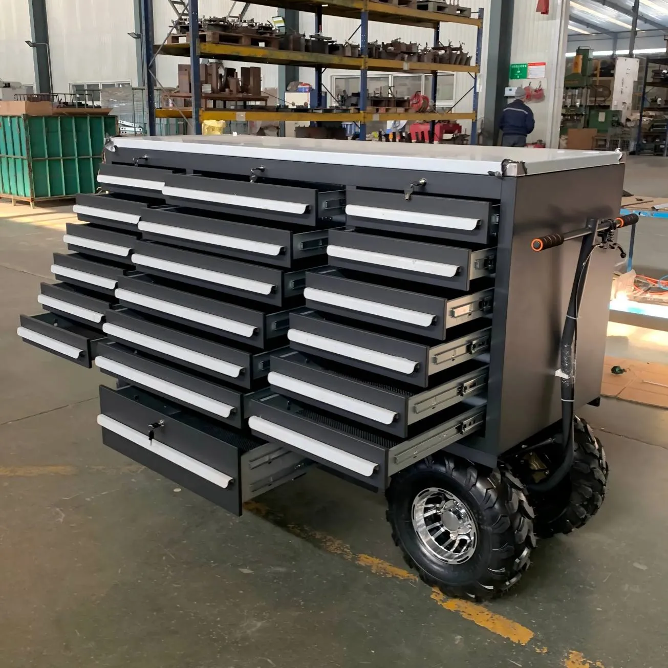 Seguridad y confiabilidad: los cajones están equipados con cerraduras para garantizar la seguridad de la herramienta y evitar la pérdida o el uso no autorizado. El diseño de la almohadilla antideslizante en el interior evita que las herramientas caigan y se dañen durante el movimiento.