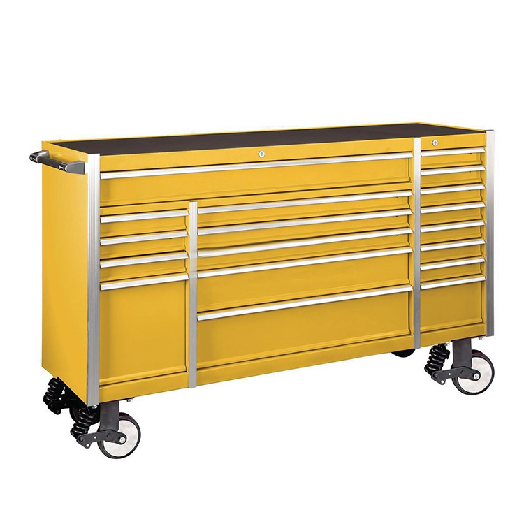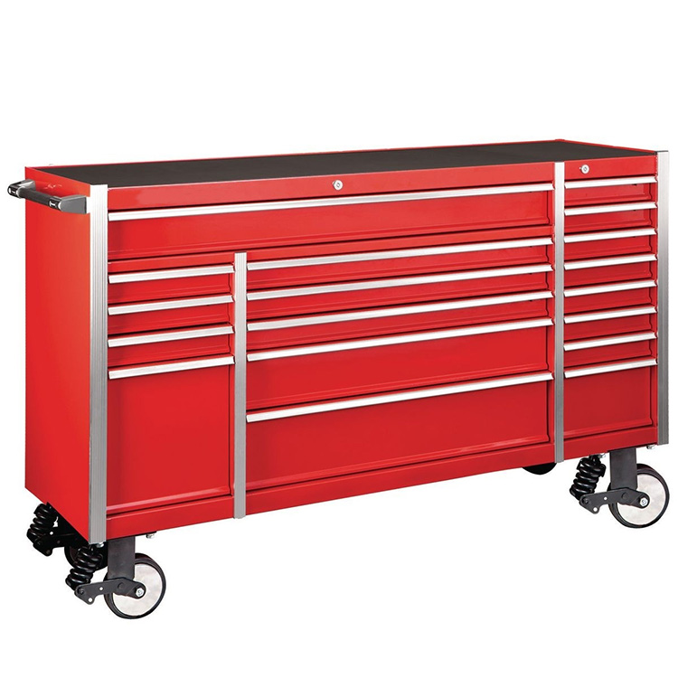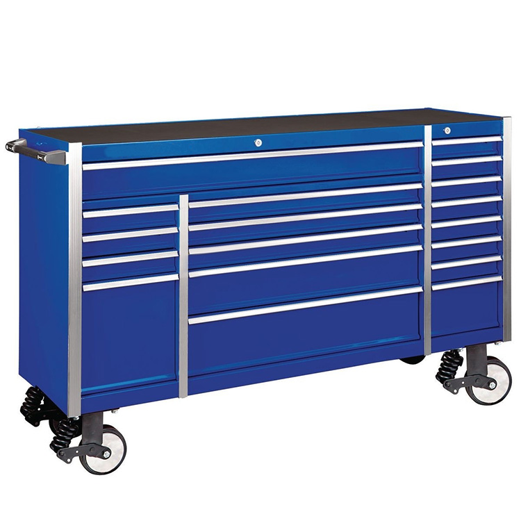 El gabinete de herramientas de rodadura incluye numerosos cajones de diferentes profundidades para acomodar diferentes tamaños de herramientas, y los revestimientos de cajones de goma EVA que protegen las herramientas y evitan el deslizamiento.
